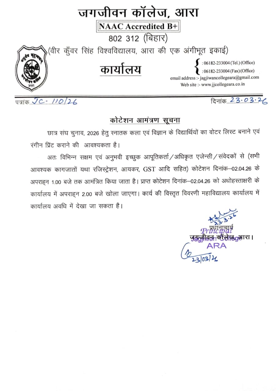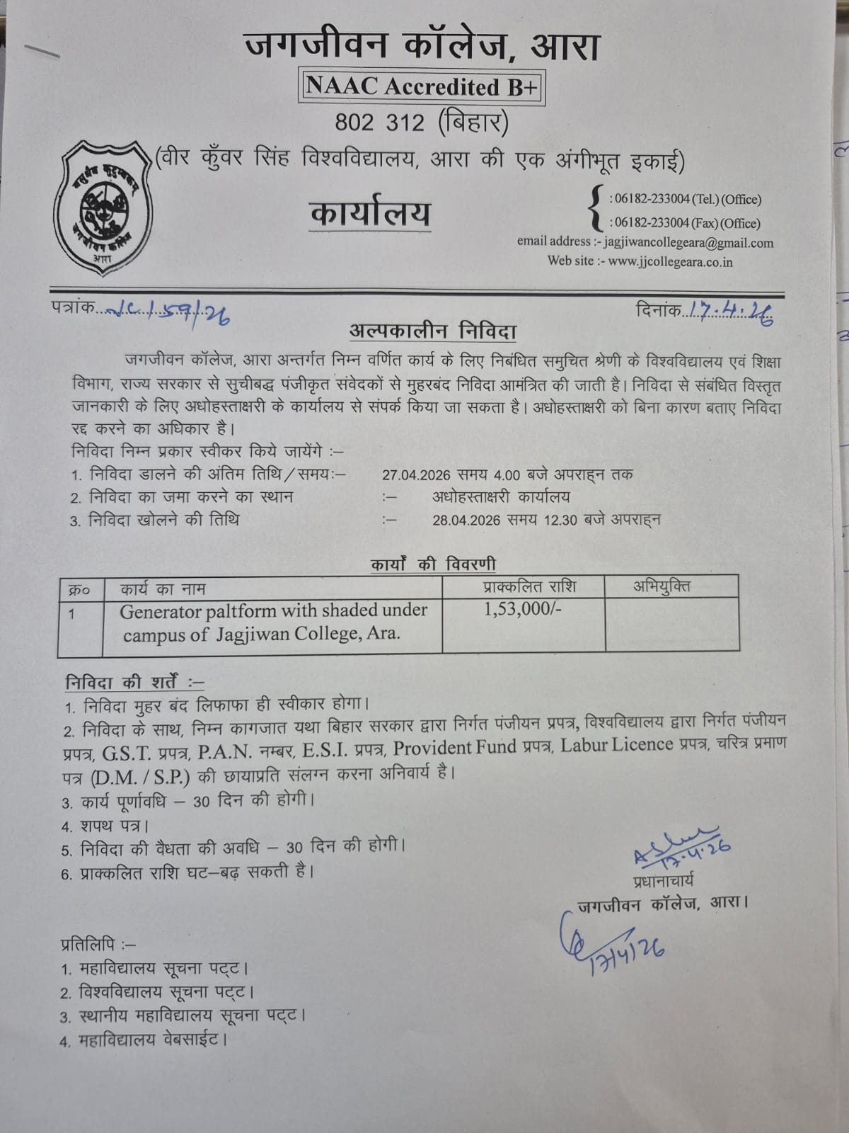 Welcome to Jagjiwan College, Ara (Bhojpur) Bihar, a premier college of higher education committed to creating, conveying and applying knowledge to continuously provide opportunities for educational and personal growth.... View More... |